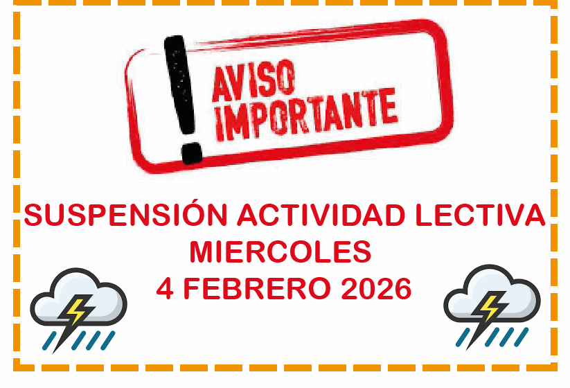Estimadas familias Nos acaba de llegar comunicación oficial de la Junta de Andalucía con la información siguiente: Tras la elevación a situación operativa 2 del Plan de Emergencias de Andalucía por el riesgo de inundaciones y fenómenos meteorológicos adversos, se […]