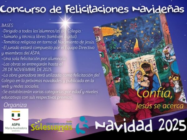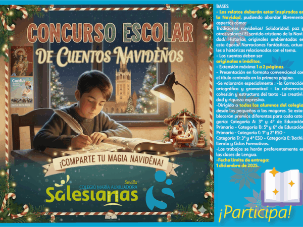 Leer Más 24/12/2025 Navidad 2025 Leer Más 16/12/2025 I Concurso de Cuentos Navideños, Leer Más 13/12/2025 Concurso de Felicitaciones Navideñas Leer Más 07/11/2025 SALESIANAS SAN VICENTE EN EL FORO FP 2030 Leer Más 12/09/2025 Salesianas San Vicente con la lucha contra la adrenoleucodistrofia infantil. Todos somos Juan Leer Más 02/09/2025 Informaciones de inicio de Curso 2025 2026 Leer Más 02/07/2025 Nuestro colegio, finalista en los IX Premios Alianza para la FP Dual Leer Más 30/06/2025 LIBROS DE TEXTO INFANTIL Y CCFF. LIBROS DE LECTURA PRIMARIA Y SECUNDARIA. CURSO 2025 2026 Leer Más 27/06/2025 VOCES. Ediciones publicadas. Leer Más 02/05/2025 I Jornada de Formación Profesional – Encuentro Escuela y Empresa ‘‘Conectando Talento y Futuro"