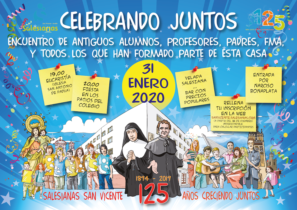 Con gran éxito de participación, celebramos el pasado 31 de Enero (festividad de Don Bosco) el evento CELEBRANDO JUNTOS. Encuentro que convocó a antiguos alumnos, profesores, personal, familias, etc.