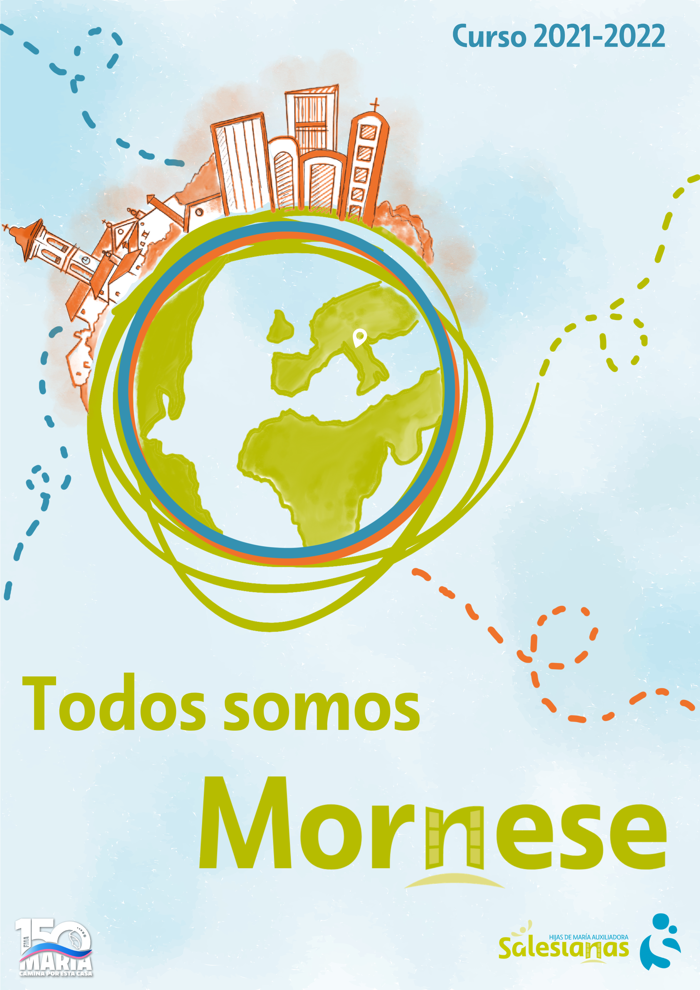 Nuestro eslogan, “TODOS SOMOS MORNESE”. Este curso, queremos dar a conocer Mornese, acercarnos a los inicios, sus valores, su riqueza y ver el recorrido en estos 150 años. Cada uno de los miembros de la comunidad educativa, desde la aportación de lo que es y hace, contribuye a dar rostro a Mornese hoy. Esto es un gran reto que tenemos y que nos ayudará a reavivar y actualizar los valores más genuinos de nuestros orígenes.