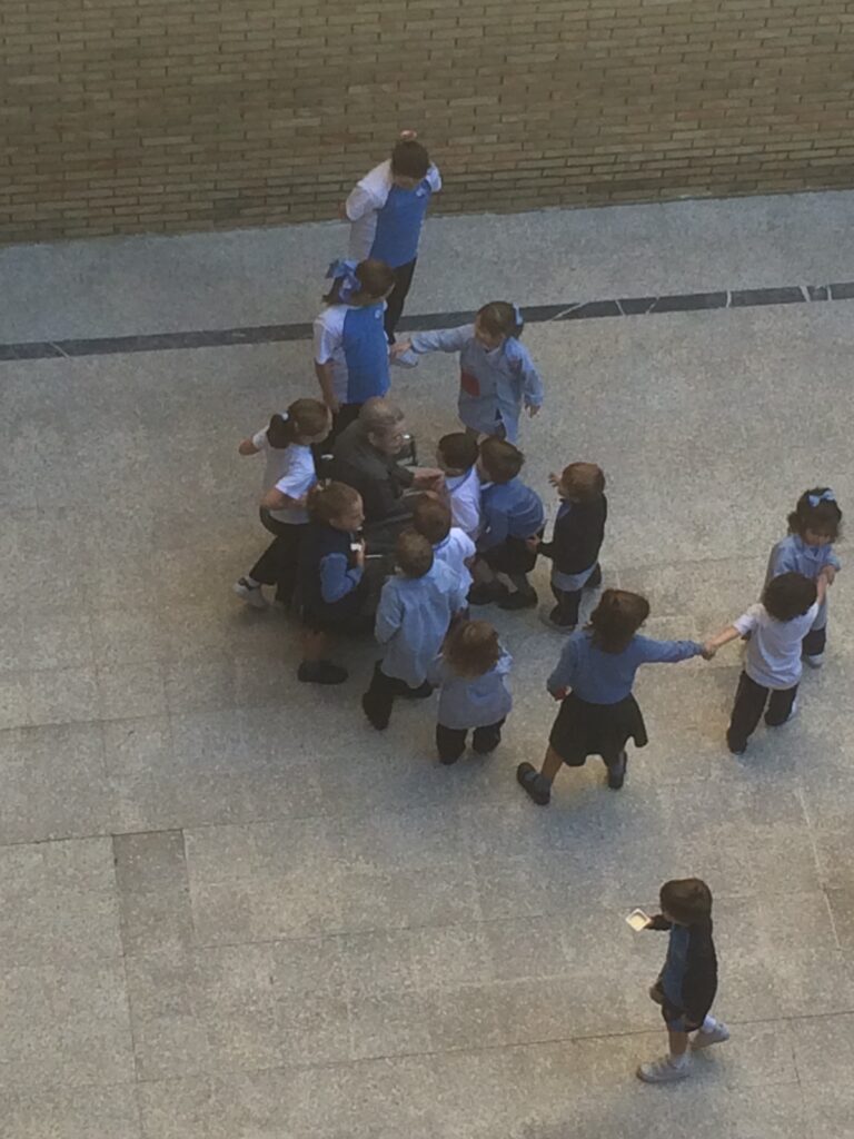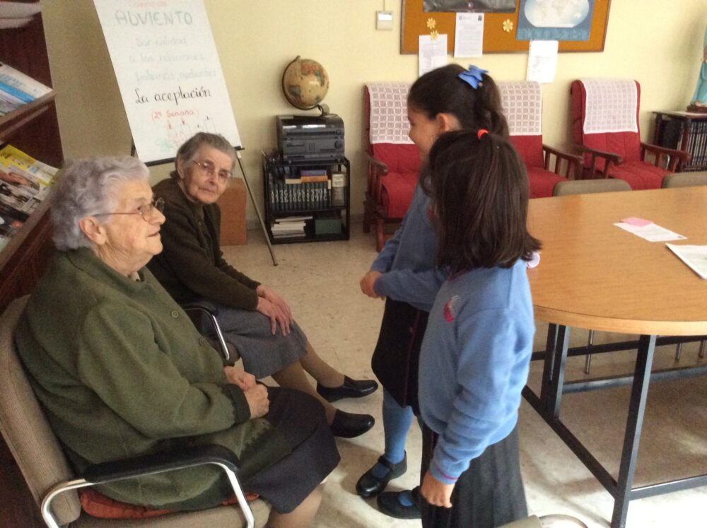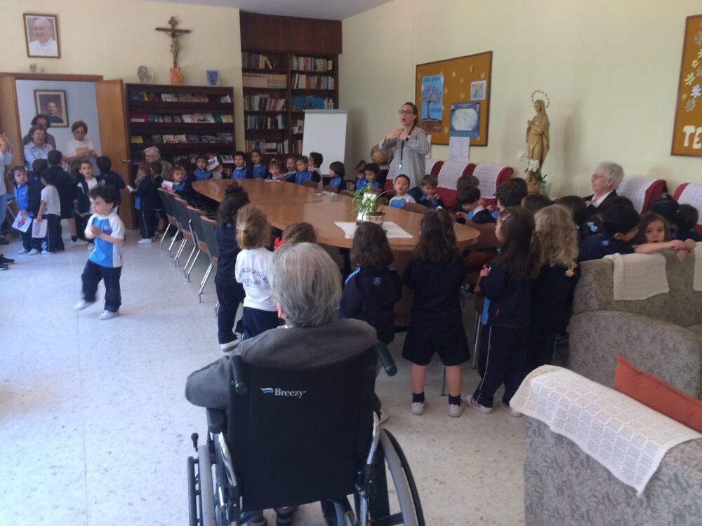 Ya mayor, en su sillita de ruedas, profesores y alumnas mayores iban a verla y le daban un paseo por el patio del colegio, una tierra sagrada para ella, incluso algunas veces los sábados por la mañana. Las personas que la han conocido dicen de ella que tenía una atracción natural hacia los niños y jóvenes, ‘con vosotros me siento a gusto’, expresaba con las palabras y con la vida.
